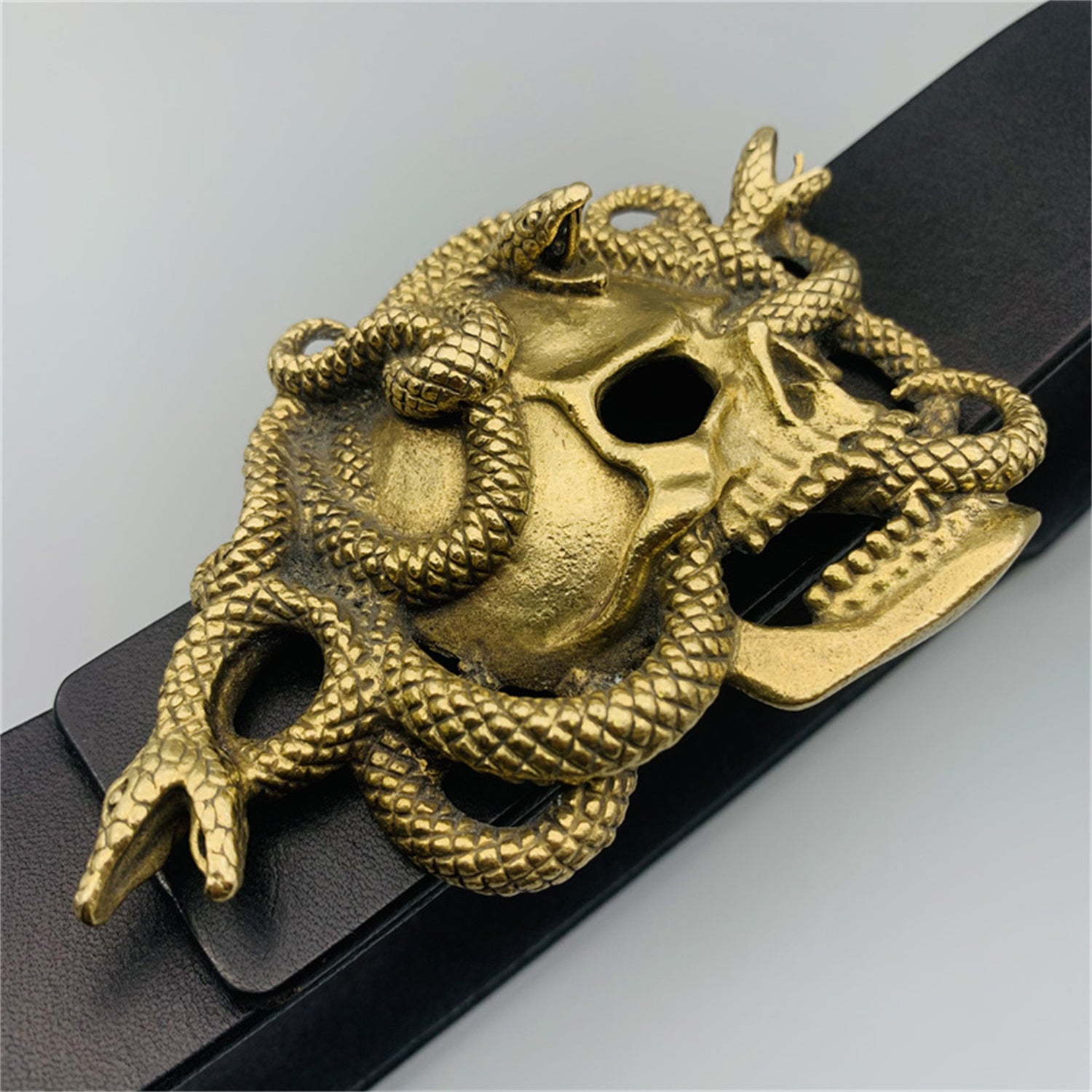 Copper Medusa Skull Buckle,Skull with Snake,Biker Leather Belt Buckle,Decoration Buckle