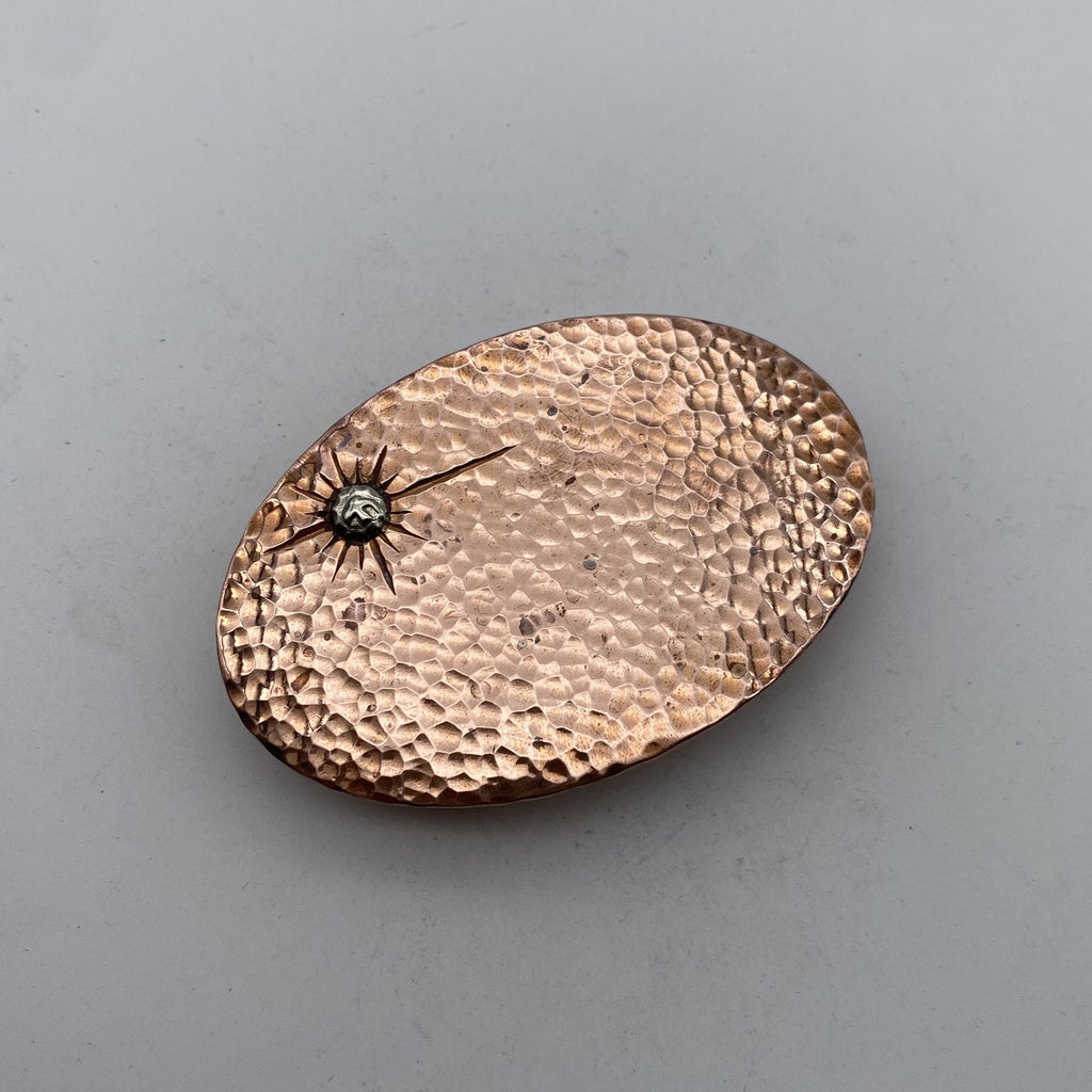 Red Copper Belt Buckle Oval Plain Hammered Buckle Handmade Leather Belt Fastener